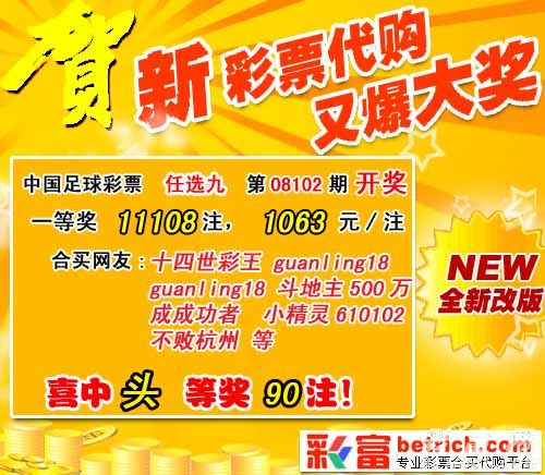 �����й������Ʊʤ���ʵ�08102����ѡ�ų�����������һ�Ƚ�11108ע��ÿע1063Ԫ��������ѡ�ų�������Ϊ��18455662Ԫ