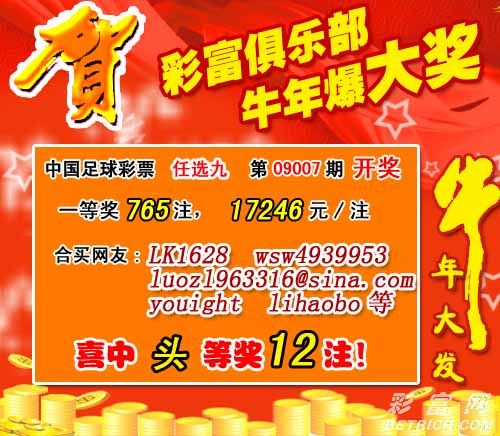 �����й������Ʊ��09007����ѡ�ų�����������һ�Ƚ�765ע��ÿע17246Ԫ��������ѡ�ų�ȫ����������Ϊ��20615532Ԫ��