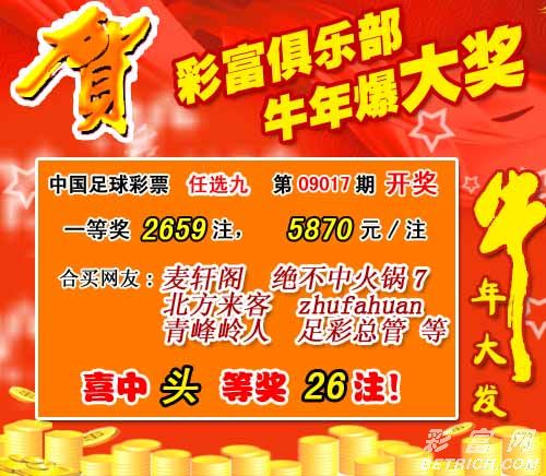 �����й������Ʊʤ���ʵ�09017����ѡ9������������һ�Ƚ�2659ע��ÿע5870Ԫ��