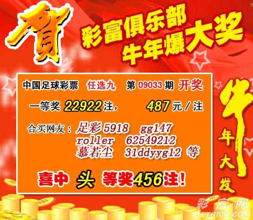 �����й������Ʊʤ���ʵ�09033����ѡ�ų�����������һ�Ƚ�22922ע��ÿע487Ԫ��������ѡ�ų�������Ϊ��17445326Ԫ��