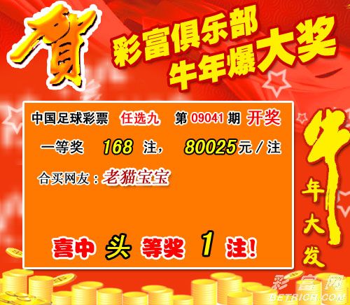 �����й������Ʊ��09041����ѡ9������������һ�Ƚ�168 ע��ÿע80025 Ԫ����������21006748Ԫ��
