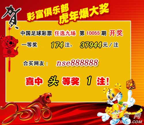 �����й������Ʊ��10055����ѡ9������������һ�Ƚ�174ע��ÿע37944Ԫ����������10316088Ԫ��