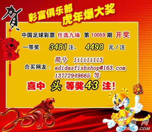 �����й������Ʊ��10059����ѡ9������������һ�Ƚ�3481ע��ÿע4498Ԫ���������� 24468002Ԫ��