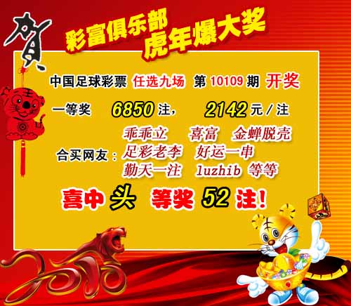 �����й������Ʊ��10109����ѡ9������������һ�Ƚ�6850ע��ÿע2142Ԫ����������22933136Ԫ��