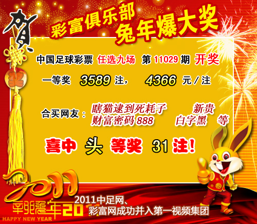 �����й������Ʊʤ���ʵ�11029����ѡ9������������һ�Ƚ�3589ע��ÿע4366Ԫ��������ѡ�ų�������Ϊ��24485972Ԫ��