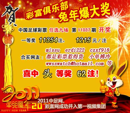 �����й������Ʊ��11037����ѡ9������������һ�Ƚ�11354ע��ÿע1215Ԫ����������21555838Ԫ��