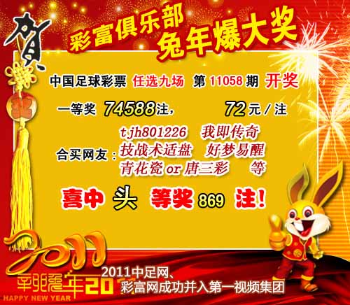 ����ʤ���ʵ�11058����ѡ9������������һ�Ƚ�74588ע��ÿע72Ԫ��������ѡ�ų�Ͷע�ܶ�8463488Ԫ��