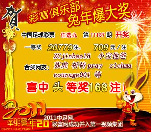 �����й������Ʊ��11137����ѡ9������������һ�Ƚ�20779ע��ÿע709Ԫ����������23022480Ԫ��