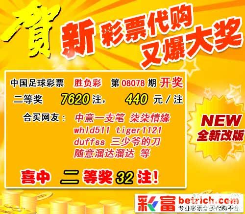 �����й������Ʊʤ���ʵ�08078�ڿ���������һ�Ƚ�380ע��ÿע20588Ԫ�����Ƚ�7620ע��ÿע440Ԫ������ʤ����ȫ����������17463668Ԫ��
