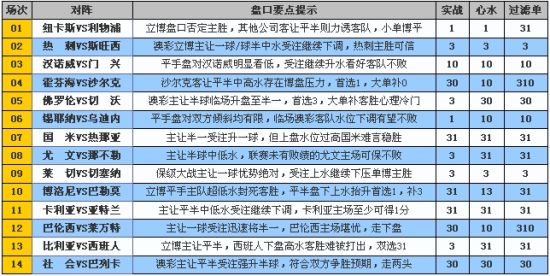 ��12043��ʤ���ʴ�Ŀǰ�̿����ݷ�������������Ӣ���ȴ�VS˹���������̳���һ��һ��/�������ʾ������ʵ�����ƣ���ע��ˮ������ѹ��ʤ���ţ���ε��ij����Ƽ��������VS�����ɣ�����֮ս����һ�������֧��������ԣ��ٳ��ٶ��µ���ˮ������ʤ�� �����IJ� 0.78����ƽ��/���� 1.08 �������� 1.18��ƽ�� 0.70 ����Ŧ��˹��������3��1��ȡ�������ջ�����ʤ��������»ص��������죬������������ȴʵ��һ�㣻�����������������䱻������2����ά���Ʒ����������ָ��ڽ��������飬����Ҳ�����������4���ܼ�������ս��ֵ�û��ɡ� ������������������������ƽ�ֵ�ˮ���IJʵ�����˾����ƽ��/�����и�ˮ��Ŀǰ�ٳ���ά�ַ������������������ˮλ����1.20����ʤ����������ã�ƽ���̿�����ˮ�����տͶ�֮�ӣ�����˫������սƽ���������1�� ����02 �� ��VS˹���� �ƽ飺3 �����IJ� 0.96��һ��/��� 0.90 �������� 0.98��һ��/��� 0.90 �����ȴ��������ܱ���������3��1������̭�����ٽ���4ǿ��������������Ȼ�ͳ�0��0��ƽ�ж�������������ʤ����������5������5�ֽ��ջ�2�ֱ���ʵ���������⣬Ŀǰ����һ��ʤ�����������ģ�˹������������0��2����̫���ǽ���3��ʤǿ�ƣ����״̬�������Ҳ���������������ԣ��������Ϳ��������� �����������̰IJʺ�����������һ��/�����ˮ���̣�������������˾������ˮ����Ŀǰ�ٳ���ͳһΪһ��/��룬��ˮҲһ�µ�������ˮ�����̴��ѹ�����Խ��ͣ���ʤ���š���ʵ�ѡ3�� ����03 ��ŵ��VS�� �� �ƽ飺10 �����IJ� 0.88��ƽ�� 0.98 �������� 0.88��ƽ�� 0.98 ������ŵ������ŷ�����ͳ�1��2ϧ��������������Ӵλغ�����������ȫ�߱������ԣ���������Ϊ������һ���������������������ٱ�����1��2���л��Һ������3��������δ���£����ְ���Ҳ������4λ��ȫ���������ٲ�Сѹ�����˷��ͳ���ȫ���ֲ��� �����������̾�������ƽ����ˮ���̣���ŵ���������ܼ�¼��δ�õ�������˾��֧�֣���ע��IJʺ�������������ˮ��0.93λ�ã����˱��ֿͳ����ָ��а����ԡ����˫ѡ10�� ����04 ���Һ�VSɳ���� �ƽ飺10 �����IJ� 0.86����ƽ��/���� 1.00 �������� 0.81����ƽ��/���� 1.05 �������Һ����ֿͳ���ǿ2��1�Ʒ�����ǿ��������ͬʱҲֹס���������ֲ�ʤ���»�֮�ƣ�ʿ����Ҳ�õ�������裻ɳ��������ŷ�������������ش�2��4�����������ñ϶��ͣ�������ܴλغϿͳ����̻�����ʮ�����ޣ�����������Ȼ��Ϊ���ء� �����������̰IJʺ������Կ���ƽ��/�����и�ˮ���̣���������˾�����ƽ�ֵ�ˮ��Ŀǰ�ٳ����ͳһΪ����ƽ���̣��������и�ˮ��벩ȫδ��̫�����ˣ���ׯ���������ɿ���ƽ�ִ���������ѡ1����0�� ����05 ������VS�� �� �ƽ飺30 �����IJ� 0.84������ 1.02 �������� 0.84������ 1.02 �������������ֿͳ����ֲ���2��2��ǿսƽ�����ǣ�������������ȴ��Ϊ��⣬Ŀǰ���ְ�����5�����ٲ�С�������գ�������������1��1սƽ��Ү�ɣ���6�ֱ��ֲ������1��������Ŀǰ����ռ������λ�á� �����������̾������ð����̣���ˮλȴ�������Է��磬Ŀǰ�ٳ��IJʵ�����˾����Ϊ���ð���/һ���и�ˮ����������ά�ֳ��������ˮ����0.76��ˮ����ʤ�õ�����֧�֡������ѡ3����0�� ����06 ��Ү��VS�ڵ��� �ƽ飺10 �����IJ� 0.86��ƽ�� 1.00 �������� 0.88��ƽ�� 0.98 ������Ү����������1��1սƽ���֣