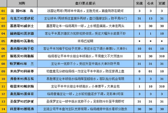 01 �� ��VS�� �� �ƽ飺3 �IJ� 1.00 ����/����� 0.82 ��ʤ�� 1.00 ����/����� 0.85 ����������ʽ����ŷ�ޱ�ǰ������3����������������ѡ��ʵ������ǿ����ս���ֱ����������������Ķ��飬��������Ҳ��ϣ����һ�����ɵ�ʤ��������ӱ�ս��Χ;����ʵ���Ա���ȫ����һ������ϣ���������������ֻ�������ķݡ� �����������̾�����������/��������̿��̣�˫��ʵ�������¶���ɣ�����ˮλƫ����Ҫ�ǿ��Ƿ��������ɳ������油��ս������Ӯ�������������ǣ���ȡʤӦ������֮�С���ʵ�3�� 02 �ڿ���VS��ɳ�� �ƽ飺13 �IJ� 0.72 ���/���� 1.10 ��ʤ�� 1.05 ���� 0.80 ��������ŷ�ޱ��������ٽ���������֮һ���ڿ���Ҳ��ȫ��ץ����ս��Ŀǰ�������ݻ���ȷ������ǰ��������ҪĿ����ĥ�����ݺ�ս����;��ɳ�᱾��ŷ�ޱ�Ԥѡ�������������������ɱ������������Ȼδ��ͨ����һ�ؿڣ�������ѽ�����ʵ����ȫչ���˳����� �����������̰IJ����������/�����ˮ���̣�����ʤ����������ֱ�ӿ������и�ˮ���ٳ����ձ����������̣���˫��Ŀǰʵ���Ա��������̿�����ƫ��������˾����������֮�ӣ���ƽ�����Ŵ���������ѡ1����3�� 03 ī����VS����ʿ �ƽ飺30 �IJ� 0.68 ����/һ�� 1.14 ��ʤ�� 0.93 һ�� 0.93 ����ī��������������������0��2���и��ױ��ǣ����Ǽ��������ڰ�����ĵ�2��ʧ������6ս3ʤ1ƽ2�����ֻ��㲻��;����ʿ����4��1��ʤŲ��������ȴδ������ǿ����ͷ��������������˹�����1���Ʒ�����ӽ�Ϊ�ó���˳�������澳��ȴ���з��������� �������������ձ������ð���/һ���ˮ���̣�������ʤ����һ����ˮ����ע��������˾̬��һ��ת�䣬Ŀǰȫ��ͳһ��һ���̣�������ˮλ����ƫ�ߣ��������շֳ�ʤ�������˫ѡ30�� 04 ���ɸ�VSĪ���� �ƽ飺1 ΰ�� 0.95 ��ƽ��/���� 0.95 Bet365 0.95 ��ƽ��/���� 0.95 �������ɸ����пͳ�1��1��ǿ��ƽ������ȡ��3�ֲ��ܣ���6�ֳɼ�Ϊ2ʤ2ƽ2���������һ֧�������������ʵ������;Ī����������������3��2��ն��������ķ����5��ʤ������ҲѸ�ٻ�������2λ���������������Ʋ����� �����������̾��Կ���ƽ��/������ˮ���̣�����ھ�ʵ���õ�һ���Ͽɣ�����ע������ˮλ���̧����Ŀǰΰ�º�Bet365������1.04�и�ˮλ�ã�ׯ������֮�����ԣ�������������սƽ����ʵ���1�� 05 �µ¸�VS������ �ƽ飺* ���������� 06 ɣ��˹VS������ �ƽ飺01 ΰ�� 0.84 ��ƽ��/���� 1.06 Bet365 0.825 ��ƽ��/���� 1.075 ����ɣ��˹��������ʵ��ƽƽ����������ջ������������������δ�н������ˣ�������������ʵ����Ϊƽӹ;�����������������DZ����ɸ�1��1�Ⱥͣ���������ֿͳ�1��2����������������10�ֲ��ܣ�5ʤ5ƽ�ķ����ȶ���ֵ�ÿ϶��� �����������̾��Կ���ƽ��/�����и�ˮ���̣��Ͷ����ǿ�Ƶõ�������˾һ���Ͽɣ���ע�������л��䣬ΰ���ѽ���1.049����Ŀǰ�������ԣ����ٳ�������̽�ɵ�ѡ0����1�� 07 ˹����VS����˹ �ƽ飺30 ΰ�� 1.10 ��ƽ��/���� 0.80 Bet365 1.10 ��ƽ��/���� 0.80 ����˹������������0��1����ά������9�������Σ�����������0��0սƽ�����ɺ�һ���������������ʵˮ����һ�����;����˹������������Ƿ�ѱ�������0��0��ƽ������ʤ������ͷ����ֹ��Ŀǰ11ս��11�ֵķ���Ҳ���������⡣ �����������̾��Կ���ƽ��/�����ˮ���̣��������˹�����ܵ�������˾һ�µͿ�ʵ����������ע�����ȴ���иĹۣ�ΰ������ˮλ���