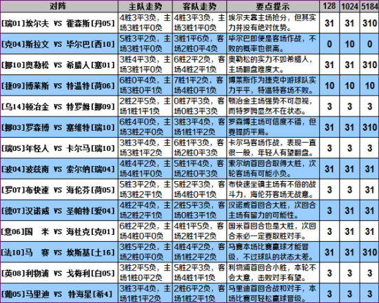 ����ժҪ����������ʤ���ʽ�����ŷ�ް����������ִλغϵĽ������漰���غϱ�����ʤ���ʾ�Ȼͷ��δ����Ԫ�����ŷ�Ӯ�����˳�������ij��֣������������֡����ȳ����������������������ƺ���ζ�ű���ʤ���ʻ�������أ� ��������Ҫ��һ���غ������ع� �������ǻغ������£��غ����¶Դ��ֶ��бȽ����Ե�Ӱ�죬��Ȼ�˽��غ�������������飬ȴҲ�Ƿdz���Ҫ��һ���� ����1��������VS��ɭ˹ �غϣ���ɭ˹ 1-1 ������ ����2��˹����VS�϶��� �غϣ��϶��� 3-1 ˹���� ����3��������VSϣ���� �غϣ�ϣ���� 2-1 ������ ����4������˹VS������ �غϣ������� 2-0 ����˹ ����5����ұ��VS����ķ �غϣ�����ķ 1-1 ��ұ�� ����6����ɭ��VS��ά�� �غϣ���ά�� 1-1 ��ɭ�� ����7��������VS������ �غϣ������� 1-0 ������ ����8��������VS������ �غϣ������� 3-0 ������ ����9��������VS���� �غϣ����� 4-0 ������ ����10����ŵ��VSʥ���� �غϣ�ʥ���� 0-3 ��ŵ�� ����11���� ��VS���ſ� �غϣ����ſ� 0-3 �� �� ����12���� ��VS��˹�� �غϣ���˹�� 1-1 �� �� ����13��������VS��÷�� �غϣ���÷�� 0-1 ������ ����14�������VS�غ��� �غϣ��غ��� 1-1 ����� ��������Ҫ�ض�����ʤ��Ӵ��ִ���� �������غϵı��������������6�����������������Ѿ��������й��ס���ŵ�������Һ������ɶ�ȡ����3�����ϵ����ƣ����϶��ͺ�����������ȡ����2�����ơ����ֱ������ס���ŵ����������������ŷ����ʤҲȫ������1.20���£����ƽ��ٶ���ɱ���֣���ʵ������Ϥ�������IJ������ѻ��DZȽ������һ��ʵ����������ı�����������ָɾ�ɱ��������������������ŷ����ŷ�������϶����Բ�ѯ�� �����϶��͡������ɡ��������Լ������Ķ���������ȫ���ͳ���ս����ʵ���ĽǶȿ�ֻ�б϶���ռ�ݾ��Ե�ʵ�����ƣ�ʵ��˫ɱ�ĸ�����ߣ��������ӿͳ�ս����ԭ���ͺ����������Ҷ��ּ������ǿ��������̵���ӣ����Լ�������������������Ҳ����Ϊ�档 ��������Ҫ���������ų�ս�������� �����������������غ��ڿͳ��ֱ����õ�ƽ�ֺ�һ��Сʤ������֮���ۻص���������ȷ�����ɽ�������Ȼ����и��ȫ���Ը����������Ͷӵ�ʵ�����������ʤ��ʵ��û��ʲô������Dz������ȵ���ѡ�� ������ŷ������������������صĴ������������Ȼ���������������ˣ����Ͼ�ֻ��һ�����ƣ����ҿ������Ŀͳ�����Ƿ�ѣ�������ʵ���������ǰ���£��ͳ��ܷ��غͻ���δ֪����ֻ�а����ɡ���ɭ��������ķ��������ս��δ��ȡʤ����������ķ���������Լ��ó���������ȴδ�����±������ض�սʵ���༪�٣���ɭ����һȦŷ�ް����������ڿͳ�����2��1���������ֶ���ʵ����ǿ�����ָ��ʸߣ�������������ʵ������ռ�����ƣ����ӵ�ŷս����Ҳ���ḻ������Ӯ�������Ѷȣ�˫ѡ10�ɹ��ء������ɺͰ������ֿ��������֣������������ֵ�ʵ�������������Ӷ�û�б�ʤ�İ��ա� �����ۺ���������������ʤ������Ȼ�����Ѷ��������ӣ��������������ɲ����������Ŀ�����������Ψһ��Ҫע����ǣ��ڴ�ʤ��ǰ���£�������и�Ŀ����ԡ�