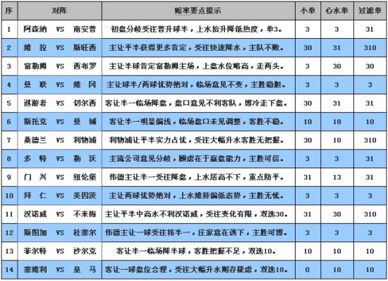 ����ժҪ��ʤ����12117�ھ���Ӣ�����¼��������£���Ŀǰ�̿����ݷ��������������Ƽ��¼װ���VS����ģ��������/������עֱ��������ʵ���Ա����ƾ��ԣ������е�ˮ��ʤ���ǣ����Ź�עӢ��Ѳ����VS�ж��������ð�һ֧�ֲ��㣬�ٳ����⽵�̣����������̡� ����1����ɭ�� VS �ϰ��� �Ƽ���3 �����IJ� 0.66 һ��/��� 1.20 ����ΰ�� 0.78 һ��/��� 1.11 ����Bet365 0.95 ��� 0.95 ������ɭ����������2��0���ݺ��������ͬʱҲ�������������ֽ���ģ�����������ǵ�ˮ��©��սδ��ʧ���������ϰ��տ��ִ���������ص㣬�����α������鲻�㣬�������ֶ��������飬��ӻ���Ҫ�ʵ�������ս˼·�� ������������������˾���з��磬�IJʺ�ΰ��������һ��/����ˮ���̣�Bet365ֱ�ӿ������ˮ����ע���ձ���������̣����������õ�һ���Ͽɣ�Ŀǰ�ٳ����������и�ˮ������Ч�������ȶȣ�������ʤ˳���������ʵ�ѡ3�� ����2��ά �� VS ˹���� �Ƽ���31 �����IJ� 1.06 ƽ��/���� 0.80 ����ΰ�� 1.08 ƽ��/���� 0.80 ����Bet365 1.10 ƽ��/���� 0.80 ����ά����������Ŧ��˹��ǿƴ��1�֣�ͬʱҲֹס�˿��������ܵĵ�����ͷ�����ȫ��ʿ��Ҳ�Ǽ������������ֻص���������������һ����˹����������ս��è�볡�����������հ�ƽ�����Ҳȡ����3�ֲ��ܵĴ�ÿ��֣���10��ʧ2��Ĺ����������ǿ���� �������������ձ�������ƽ��/�����и�ˮ���̣�ʵ���Ա�˫����������ӿ�������������������˾��δäĿ���Ͷӣ���ע��ˮ�����µ��������÷ָ�ֵ���á����˫ѡ31�� ����3������ķ VS ������ �Ƽ���30 �����IJ� 1.02 ���� 0.84 ����ΰ�� 0.98 ���� 0.89 ����Bet365 1.049 ���� 0.85 ��������ķ���ֿͳ�0��3���������ķ���£������������;���ʧ��������������5���ʤ����Ӷ����������ı�֤����������������2��0���ɻ���̫���ǣ�����ǰ���ֶ���ʵ�����߹������Ķ���ȡ��2ʤ1ƽ�Ѽ����������˷��ӿ������졣 �����������̾������ð����и�ˮ���̣�����ķ�������Ƶõ�������������ˮλ������ڲ�С���գ�Ŀǰ�ٳ���ά�ֳ���̬�ƣ�����˫�����շֳ����¡����˫ѡ30�� ����4���� �� VS ά �� �Ƽ���3 �����IJ� 0.88 ���/���� 0.98 ����ΰ�� 0.90 ���/���� 0.96 ����Bet365 0.95 ���/���� 0.95 �����������������������ϰ���3��2��ʤ����������������ڶ�����������ıȷ֣�ԭ����̵ĺ���ߵ�ǰȴ����©������˧����ɭ��Ȼ�����������ͷ������ȥ����ս�������ص������ά����������2��2սƽ˹�пˣ������������4��ʿ�����ǣ���������ս��ͳ�����������IJ��㡣 �������������������/������ˮ���̣�˫��ʵ������Զ�������ע������˾������䣬�����������һ�¿϶���ʵ��ƽƽ��ά�Կͳ����������ã����ʵ�3�ȵ��� ����5��Ѳ���� VS �ж��� �Ƽ���31 �����IJ� 1.06 �ܰ���/һ�� 0.80 ����ΰ�� 1.10 �ܰ���/һ�� 0.79 ����Bet365 1.10 �ܰ���/һ�� 0.80 ����Ѳ����������������ھ�1��3��������������ս�ս����ջ�1�֣������ؽ�Ͷ���ջ����������Ȼ���ܽ��������Ľ�����ж�������3�־���ǿ��ʤ����������ʵ��������ǿ�������Ա�1��4�Ұ����������������ܵ�������������������ǰ�����ǡ� �����������̾��Կ��ð���/һ���ˮ���̣��̿������������أ���ע�IJʺ�ΰ�¸��ǽ���������Bet365��Ȼά�ֳ��̣�����ˮ��ȫ�Ե�������ˮ��ׯ��������Բ����Ͷӣ����������̡����˫ѡ31�