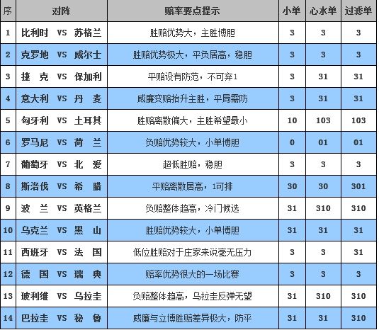 ����1 ����ʱ VS �ո��� �Ƽ���3 ��������ϣ�� 1.36 4.33 8.50 �������� 1.29 4.50 8.00 Bet365 1.33 4.50 11.00 ��������ȵ������A�����ʱ���ٿ����ǡ�����ά�ǵľ�����������������ո���������ʱ�������ֲ������κβ�ء����ֱ���ʱ�ͳ�3��0��ʤ����ά�ǣ�ǰ����2ƽ1ƽ���Ʋ������ո����������������ʿ���������ֻ�û��һ��ʤ�̡�����״̬���죬��ʤ��Ȼ����ҵ�һ��㡣 ��������������������ϣ��1.36 4.33 8.50��ƽ���Ӹߣ�ʤ���ѹ���Դ��ȶȽϸߵ���ʤ��ׯ�Ҹ���ķ�������ʮ����ȷ�������������Ļ����Ͻ�һ��ѹ��ʤ����������ƽ��̧�ߵ�4.50����ƽ���ѹ������������Ӧ����һ����������ʤ�� �������������������ʤ�ȵ� С��ѡ���Ƽ���3 ����2 ���� VS ����ʿ �Ƽ���3 ��������ϣ�� 1.33 4.60 9.00 �������� 1.29 4.50 8.00 Bet365 1.29 5.00 11.00 ��������ȵ���������������ֿͳ�2��1��������٣����ֹ���2ʤ1ƽ�������ʱͬ��7�֣�����ѹ���dz�������ʿ��������ʤ�ո���֮ǰ�������ܣ����ʵ����״̬�����ڿ�����ƥ�С�������ŷ���������ϴ�����Ȼ��һ����ʤ�ȶȽϸߵı����� ����������������������һ����ʤ�ȶȽϸߵ������£�����1.33��ʤ������������˾�е����λ��Bet365������ʤ�ⶼѹ����1.29����λ�����ٹ�˾ƽ���Ѿ��ﵽ��5.00��Bet365��������̧�ߵ�11.00���ɴ˿�������Ӧ����һ����������ʤ���ȵ��� �������������������ʤ�ȵ� С��ѡ���Ƽ���3 ����3 �� �� VS ������ �Ƽ���31 ��������ϣ�� 1.57 3.60 6.00 �������� 1.57 3.50 5.00 Bet365 1.62 3.60 6.00 ��������ȵ�������ݿ�ǰ�������Ʋ��������ֿͳ���ƽ����������3��1ʤ��������Ŀǰ������һ�ֵ��������������������Ӯ���������ͬ��7�ֲ��а��ס���������ǰ����1ʤ2ƽ�����Ŀǰ�����ڶ����ݿ������ȱ������Ǹ��ߣ�״̬�����·磬ռ������֮���ȶȲ���͡� ������������������ʤ�ȶȽϸߣ�������˾����ķ�������Ҳ�ȽϺ���������������ʤ�ⶼ��1.57���������쳣����Bet365ʤ����̧������ƽ�ַ��棬Ŀǰ�����ձ鼯����3.50-3.60��ƽ�ִ������ׯ����˵����̫��ѹ��������˫ѡ31�����ס� �����������������˫ѡ31 С��ѡ���Ƽ���31 ����4 ����� VS �� �� �Ƽ���31 ��������ϣ�� 1.53 3.60 6.50 �������� 1.44 3.60 6.50 Bet365 1.44 4.00 8.00 ��������ȵ����������������ֱ���������2��2��ƽ���������������ʤ���������ͳ�3��1��ʤ�����ᣬĿǰ��2ʤ1ƽ�ijɼ�λ�Ӱ��ס�����ǰ���־���ƽ���ճ���������Ʋ������㣬��������ŷ��ͳ���ţ������ܵ���������ӣ���ʤ���ȶ�Ӧ���ϸߡ� ������������������һ����ʤ�ȶȽϸߵ�Ͷע�����£���������̧����ʤ֮�ٽ�Ϊ�쳣������������ɢ�Ӹߣ�������š�ƽ�ַ��棬��������������3.60��λ�ã��������⸶����ׯ����˵�����տ��ԣ����������һ����ƽ�� ���������������������ƽ С��ѡ���Ƽ���31 ����5 ������ VS ������ �Ƽ���103 ��������ϣ�� 2.50 3.10 2.80 �������� 2.25 3.25 2.70 Bet365 2.75 3.25 2.55 ��������ȵ��������������ǰ����¼��2ʤ1���ijɼ�����ȡ�õ�����ʤ������С����������֧��Ӱ������밮ɳ���ǣ���������1��4����ں�����������ǰ����1ʤ2�����Ʋ��ѣ���������0��1������������������ǣ���ӵij���ǰ�������ֹۡ�������Ĵ�ͳ�������ߣ����ڵ��Ե������£���ҶԿ�ʤ���IJ�����̫�㡣 ��������������������Ͷע���ƾ��⣬���Ӷ�û��̫���֧���ߣ�ƽ���ȶ