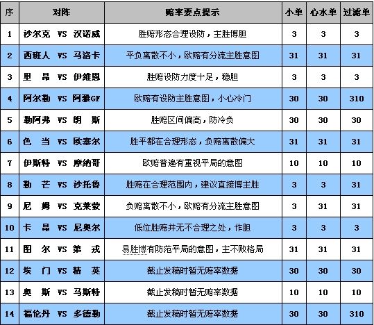 ��������ϣ�� 1.40 4.50 8.00 �������� 1.36 4.50 9.00 ��ʤ�� 1.40 4.10 7.00