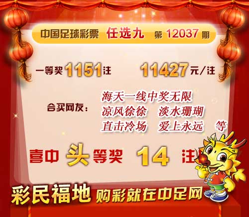 ����ʤ����12037�ڿ�����һ�Ƚ�1151ע��ÿע����11,427Ԫ�� �����ʸ����ֲ�ƽ̨�У����ѡ�����һ���н����� �������������� ����ϲ��ͷ��14ע�� ������ϲ�н����ѣ���
