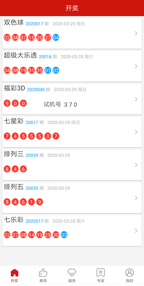 一是开奖号码集中展现。福彩、体彩7种全国开奖的玩法集中在首页,一屏看遍所有开奖号码。