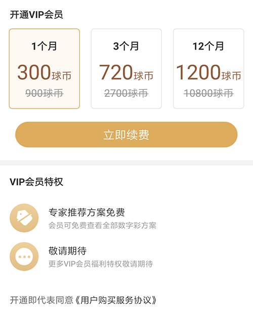 三是推出VIP会员功能。办理包月、包季、包年后,会员有效期内可免费查看所有数字彩方案,优惠力度空前。