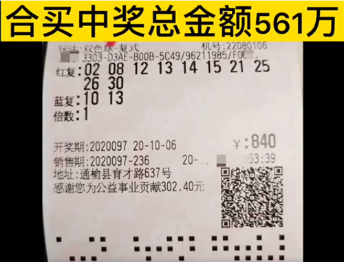 10月9日上班第一天,中奖彩站站主以及几位中奖彩民代表来到吉林省福彩中心兑奖,中奖票显示,该张彩票分别中了一注一等奖和一注二等奖,总中奖奖金561万多元。