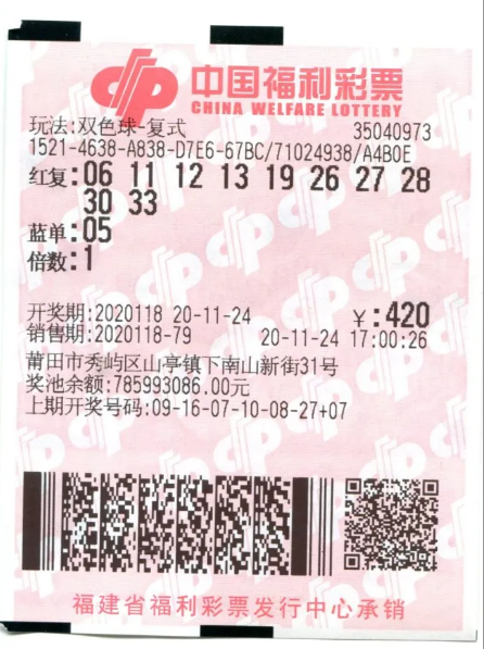 11月24日晚,中国福利彩票双色球游戏第2020118期开奖,这是双色球12亿元大派奖活动启动后的第八期派奖。当期开出4注一等奖特别奖,其中1注被莆田幸运彩民揽获。