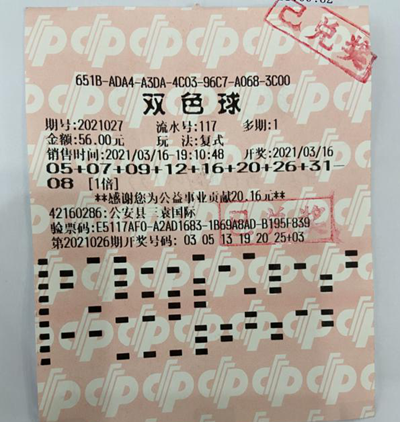 3月16日晚,福彩双色球第2021027期开出05、07、09、16、20、26+08的大奖号,湖北彩民延续上期收获3注头奖的好运,再次中出2注一等奖,分别被荆州公安县和黄冈蕲春县投注站获得。
