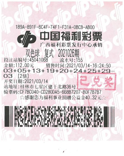 3月14日晚,中国福利彩票双色球游戏进行第2021026期开奖。当期双色球红球号码为03、05、13、19、20、25,蓝球号码为03。当期一等奖全国开出74注,单注金额500多万元。广西购彩者收获4注一等奖,据广西福彩中心机房搜索,本期中出的双色球一等奖分别落户于南宁市、桂林市、河池市巴马县,其中桂林市中出2注。