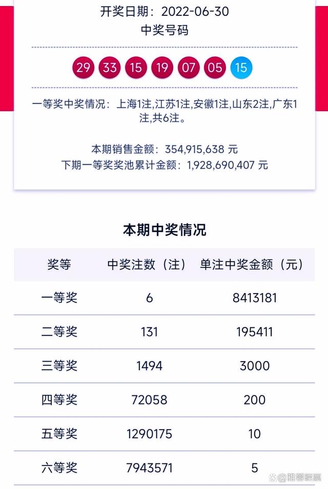 北京时间6月30晚上,中国福利彩票双色球游戏迎来了本年度的第074期开奖,即时开出的中奖号为红球05 07 15 19 29 33,蓝球15。