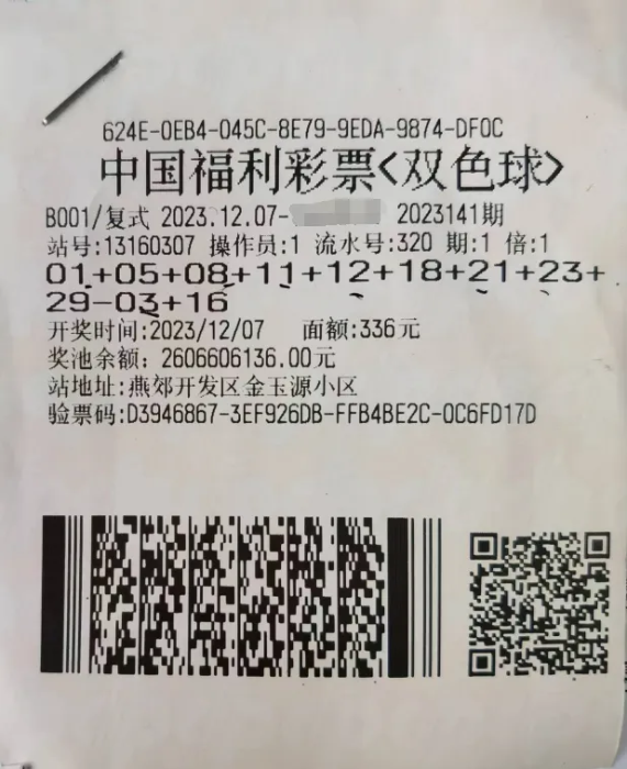 12月7日,双色球第2023141期,河北省三河市燕郊开发区金玉源小区门口13160307号网点10位购彩者合买9+2复式票,中一等奖1注、特别奖1注、二等奖1注、三等奖18注、四等奖63注、五等奖65注,奖金合计1061.2407万元。第二天刚一上班,销售员巴女士带领部分合买团成员来到省福彩中心领奖。