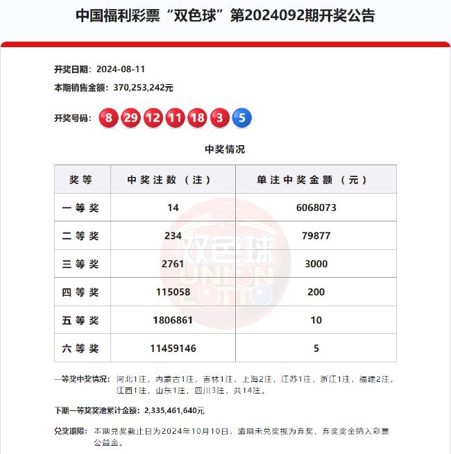 北京时间2024年8月11日,福彩双色球第24092期开奖,以下是详细开奖流程: