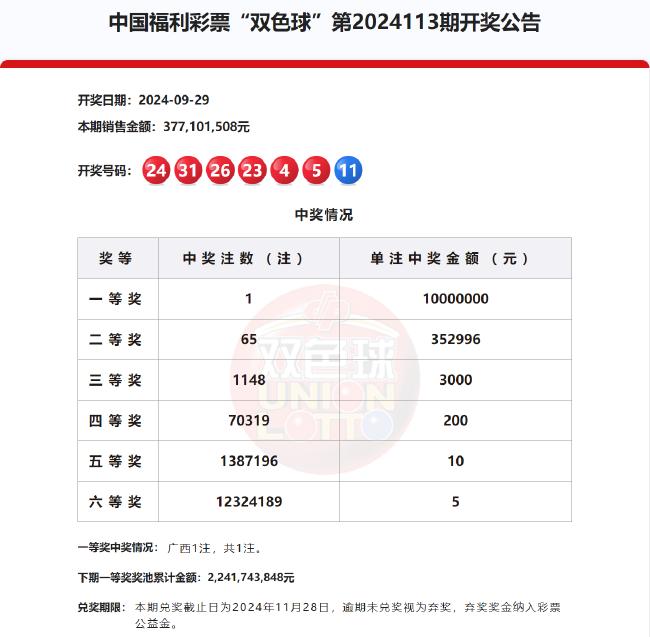北京时间2024年9月29日,福彩双色球第24113期开奖,以下是详细开奖流程: