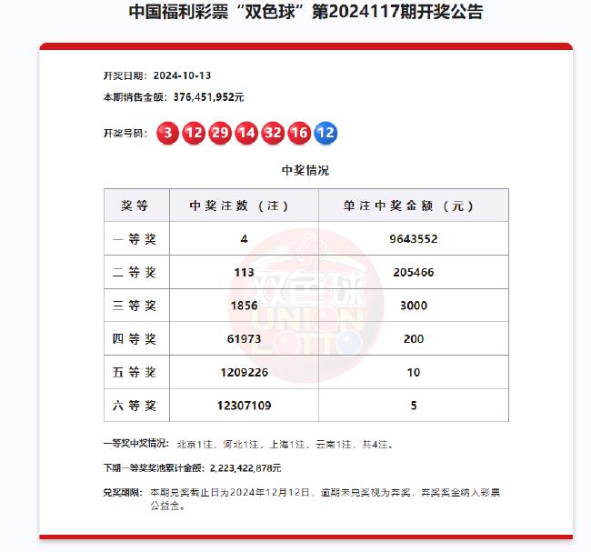 北京时间2024年10月13日,福彩双色球第24117期开奖,以下是详细开奖流程: