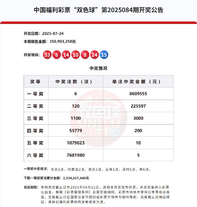 北京时间2025年7月24日,福彩双色球第25084期开奖,以下是详细开奖流程: