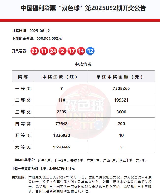 北京时间2025年8月12日,福彩双色球第25092期开奖,以下是详细开奖流程: