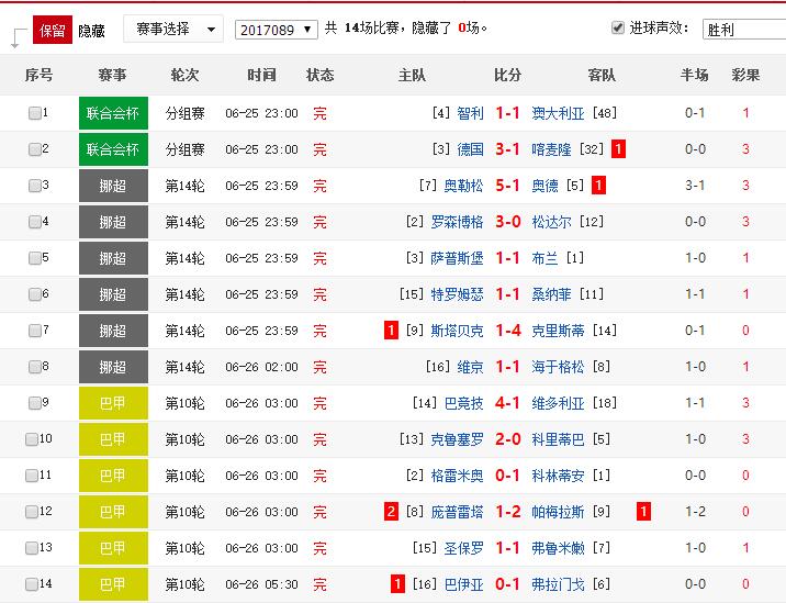 北京时间6.26日凌晨,胜负彩17089期结束了全部14场比赛的争夺,⑴智利1-1澳大利亚 ⑵德国3-1喀麦隆 ⑶奥勒松5-1奥德 ⑷罗森博格3-0松达尔 ⑸萨普斯堡1-1布兰 ⑹特罗姆瑟1-1桑纳菲 ⑺斯塔贝克1-4克里斯蒂 ⑻维京1-1海于格松 ⑼巴竞技4-1维多利亚 ⑽克鲁塞罗2-0科里蒂巴 ⑾格雷米奥0-1科林蒂安 ⑿庞普雷塔1-2帕梅拉斯 ⒀圣保罗1-1弗鲁米嫩 ⒁巴伊亚0-1弗拉门戈 彩果:1333110133001- 本期胜负彩销量:18,382,242元,任选九销量:14,274,676元。具体情况如下: