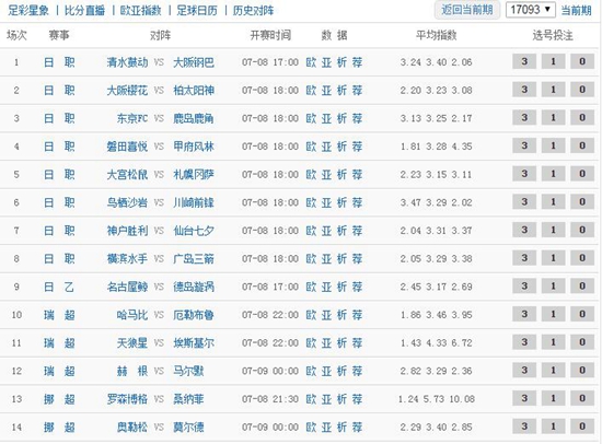 胜负彩17093期主要由日职、日乙、瑞超和挪超组成。欧联杯资格赛已经开赛,预示着新赛季的欧洲主流联赛重新开展已经不远。瑞超联赛赫根迎战马尔默,马尔默客战4胜3平保持不败,而主队的主场战绩只能算是一般,赫根能否捍卫主场尚存疑问。罗森博格近期走势较为飘忽,此番迎战弱旅桑纳菲能否走出颓势值得期待。