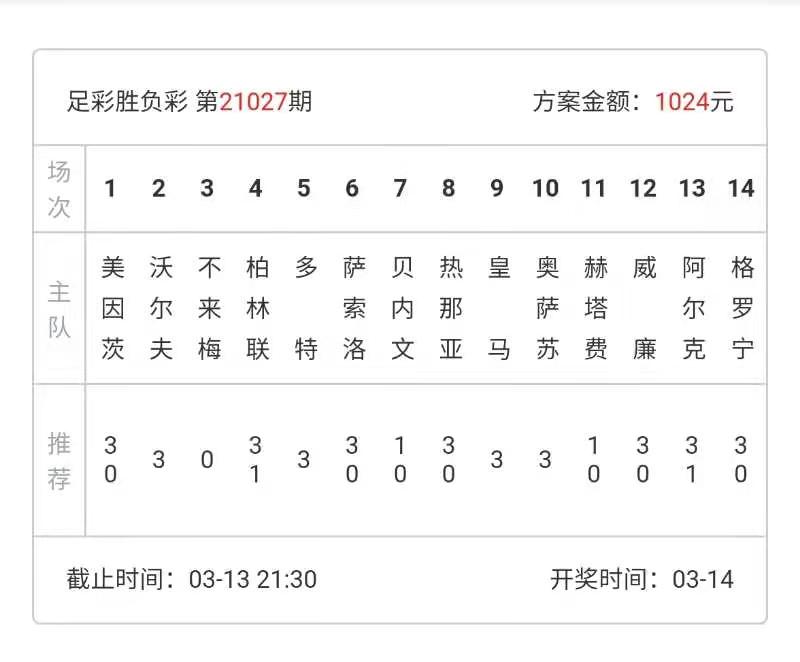 21027胜负彩由5场德甲、3场意甲、3场西甲、3场荷甲组成。本期胜负彩德甲是重头戏,云达不莱梅在过去10次与拜仁交手输足9次,本赛季的首回合交锋是5年来首次在拜仁身上抢到分数,拜仁此番不会再留机会,赢球难度不大;柏林联合近9次正赛交手,取得5胜1平3负,其中最近4战全胜,交锋心理占据上风。此战个人还是支持主队方向为妙。本期由彩店地图店主慧百竞彩为大家带来心水推荐,要上车的彩友扫描文末二维码,加店主微信交流!