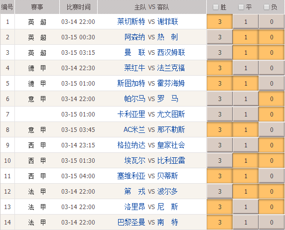 026期足彩头奖开出774注,单注奖金17464元。本期胜负彩14场比赛由五大联赛场次组成,其中西甲、意甲、英超、法甲联赛各3场,德甲联赛2场。下面我们就本期的足彩比赛做出分析。