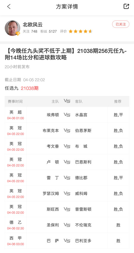 北欧风云(点击进入主页)资深足球达人,对于主流数据有独到的见解。屡中14场和任九头奖,对于北欧联赛钟情20载,善于把握基本面与数据差异程度,致力于带领用户寻求最大赢利点!