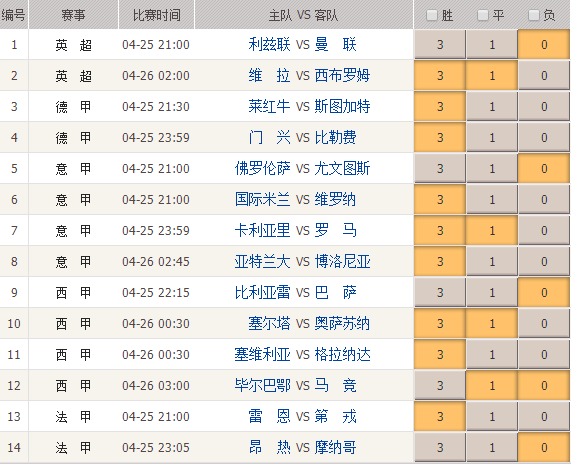 044期足彩头奖开出103注,单注奖金144145元。本期胜负彩14场赛事全部由5大联赛场次组成,其中意甲、西甲各4场占比最大,英超、德甲、法甲各有2场。下面我们就本期的足彩比赛做出分析。