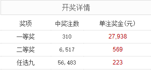 北京时间10月22日,足彩25148期开奖。本期全国中出一等奖310注,每注奖金27,938元,二等奖中出6517注,每注奖金569元。另外,任选9场中出56483注,每注奖金223元。