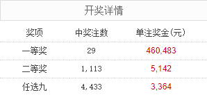 北京时间2月1日,足彩26022期开奖。本期全国中出一等奖29注,每注奖金460,483元,二等奖中出1,113注,每注奖金5,142元。另外,任选9场中出4,433注,每注奖金3,364元。