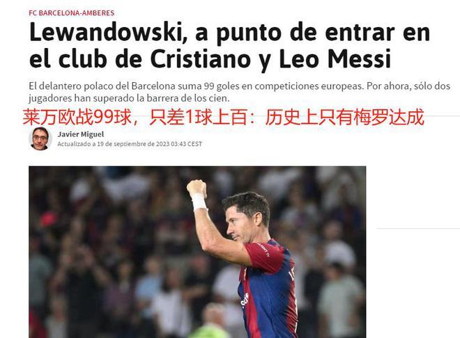 《世界体育报》给出数据:巴萨VS安特卫普一役,莱万向着欧战100球发起冲击: