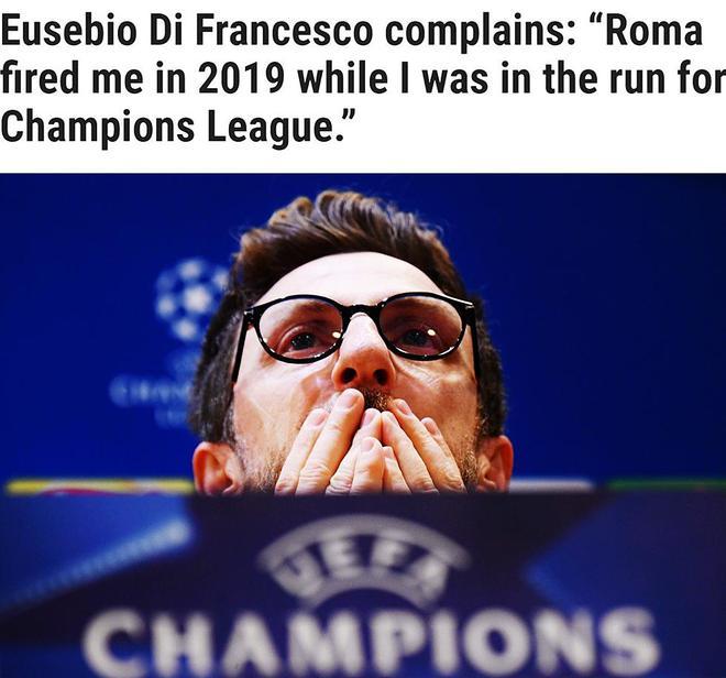 意大利媒体romapress报道,罗马前主帅迪弗朗西斯科抱怨说,当时自己带队排名意甲第5,还能带队竞争欧冠名额时,却被俱乐部解雇了。迪弗朗西斯科认为,现在的这支罗马虽然开局很差,但一旦穆里尼奥的球队找回节奏,他们将难以对付。