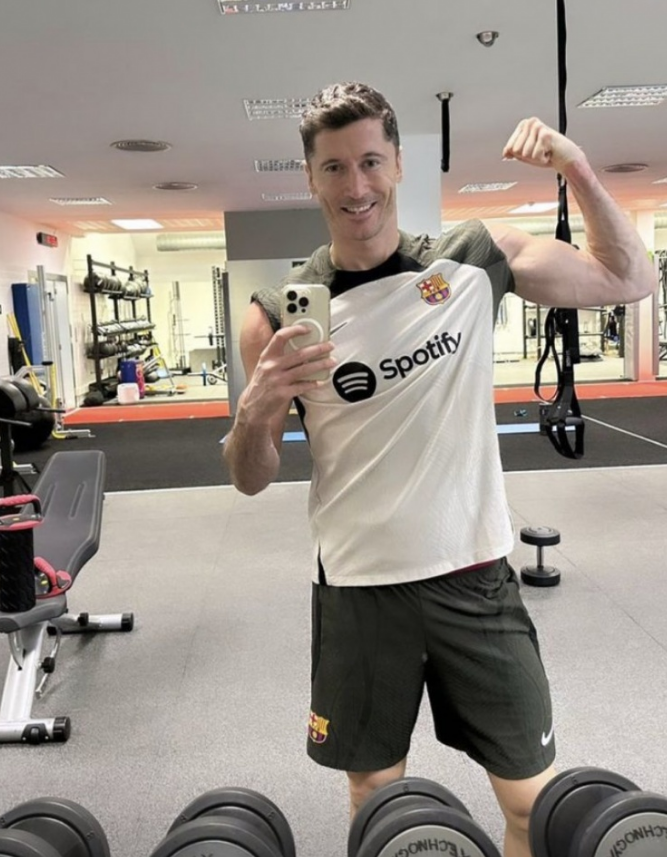 巴萨前锋莱万更新社媒,晒出自己返回巴萨训练基地内进行训练的照片。