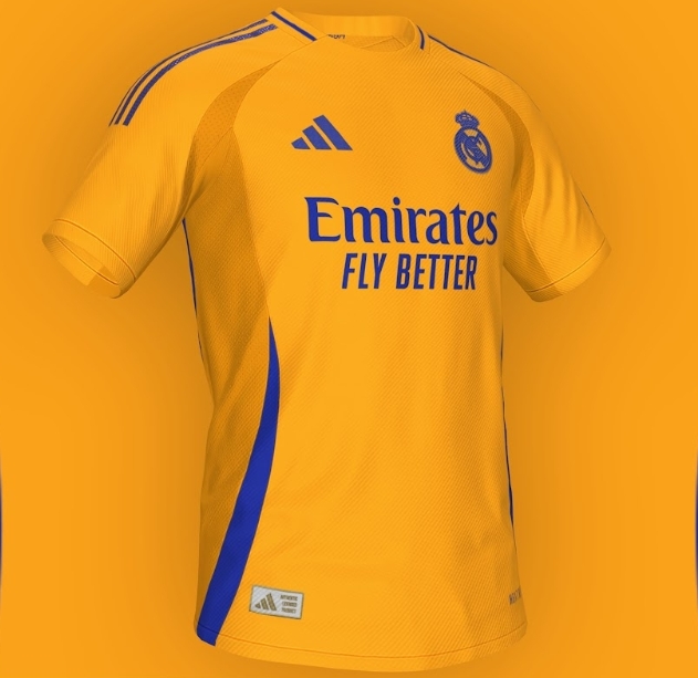 足球装备网站footyheadlines透露皇马24-25赛季客场球衣谍照,球衣主色调采用橙色,蓝色进行搭配点缀。