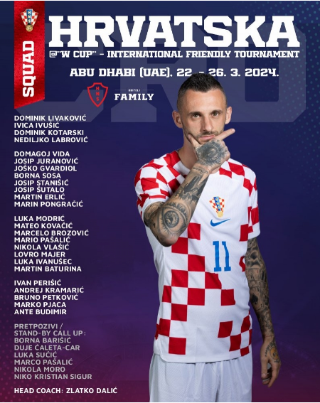 据此前克罗地亚国家队官博消息,3月将前往阿联酋参加WinsunitedCup的比赛,届时将与埃及、突尼斯以及新西兰国家队对阵。