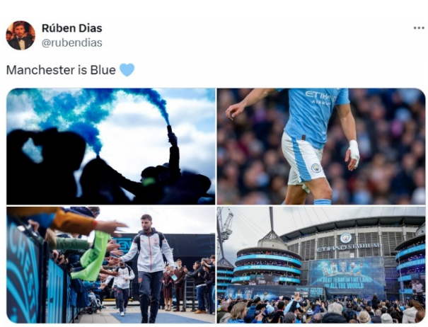 本场比赛曼城中卫鲁本-迪亚斯首发出战打满全场,他也在个人社媒晒出本场比赛球场内外的照片,配文写道:“曼彻斯特是蓝色的。”