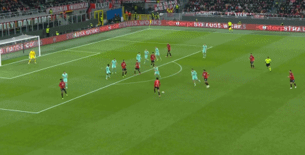 第85分钟,莱奥上演个人秀一路带球突破连过两人小角度低射,普利西奇门前伸出一脚捅进球门,米兰4-2领先↓