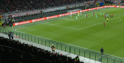 第34分钟,莱奥左路假动作晃过防守后起右脚传中,后点跟进的吉鲁俯身头球冲顶入网,米兰1-0领先↓