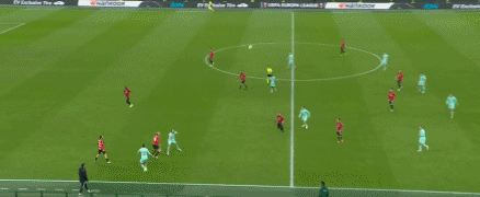 第67分钟,客队开出前场定位球,替补登场的施朗茨后点包抄小角度爆射入网,比分改写为3-2↓